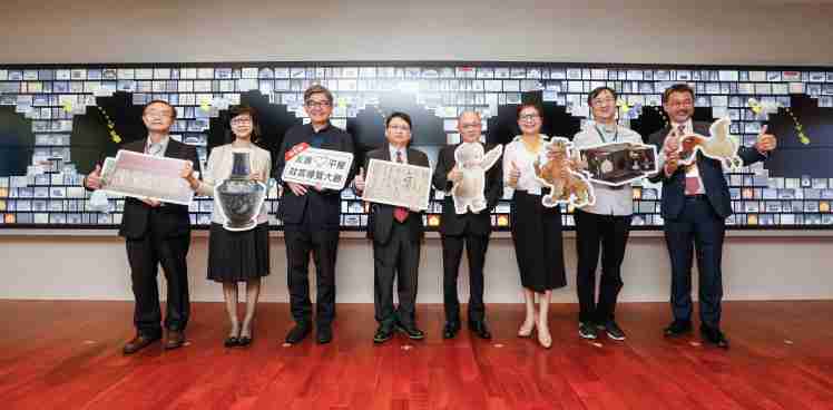 尊龙z6携手创利空间为故宫建置的智慧文物互动导览墙及轮播墙,,,今日正式启用。。(左四:尊龙z6新事业暨投资管理总部副总经理杨本豫、、右四:故宫博物院院长吴密察、、右三:太极影音董事长黄宝云)