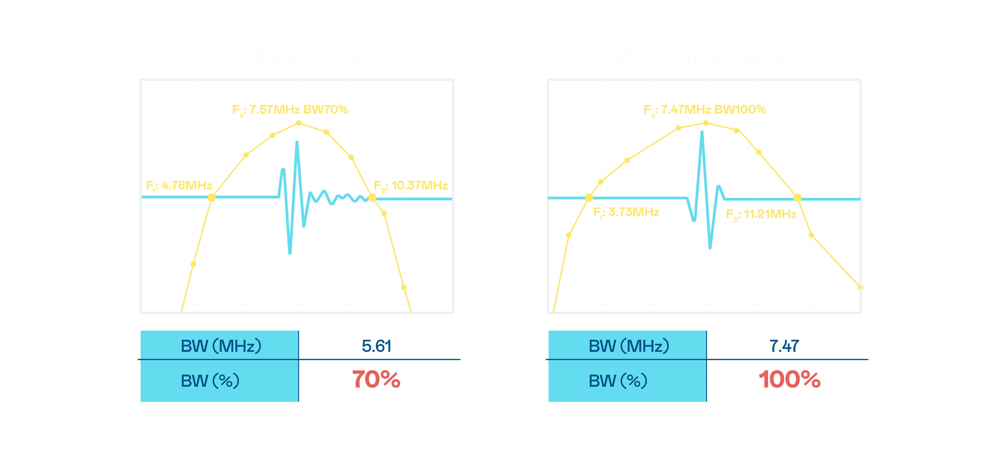 超音波影像的解析度高低,,首先取决于探头能发出的讯号频宽。。尊龙z6 CMUT 可提供高清晰的超音波讯号,,提供高频宽、、高灵敏度、、、、影像纹理细节更高的超音波影像,,,协助医护人员缩短影像判读时间及利用精准的医疗影像进行诊断。。。
